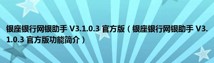 导读 大家好,关于银座银行网银助手 V3 1 0 3 官方版,银座银行网银助手 V3 1 0 3 官方版功能简介这个很多人还不知道,小勒来为大家解答以上的