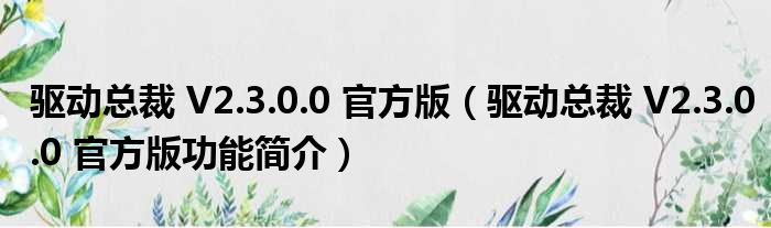 驱动总裁 V2.3.0.0 官方版(驱动总裁 V2.3.0.0 官方版功能简介)