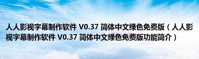 人人影视字幕制作软件 V0.37 简体中文绿色免费版(人人影视字幕制作软件 V0.37 简体中文绿色免费版功能简介)