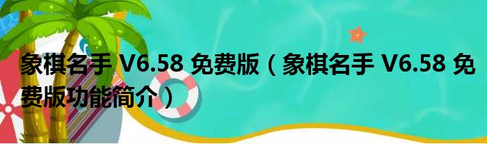 象棋名手 V6.58 免费版(象棋名手 V6.58 免费版功能简介)