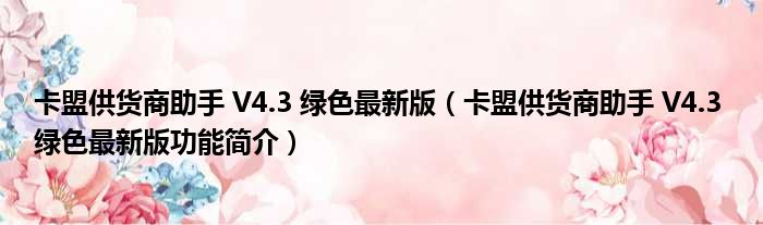 卡盟供货商助手 V4.3 绿色最新版(卡盟供货商助手 V4.3 绿色最新版功能简介)