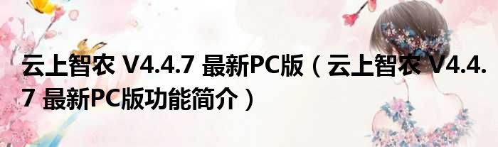 云上智农 V4.4.7 最新PC版(云上智农 V4.4.7 最新PC版功能简介)