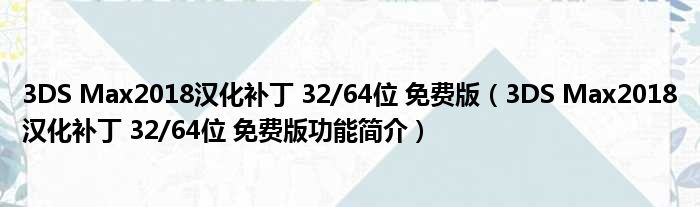 导读 大家好,关于3DS Max2018汉化补丁 32 64位 免费版,3DS Max2018汉化补丁 32 64位 免费版功能简介这个很多人还不知道,小勒来为大家解答