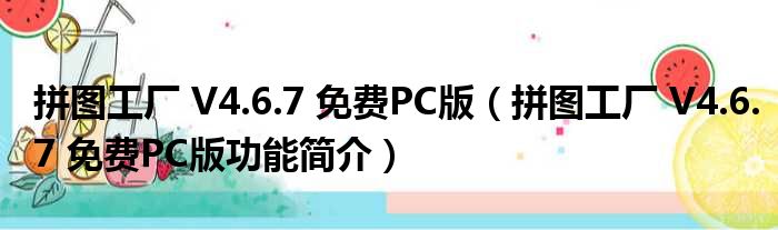 拼图工厂 V4.6.7 免费PC版(拼图工厂 V4.6.7 免费PC版功能简介)