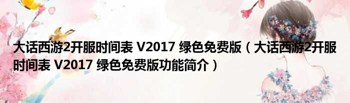 导读 大家好,关于大话西游2开服时间表 V2017 绿色免费版,大话西游2开服时间表 V2017 绿色免费版功能简介这个很多人还不知道,小勒来为大家解