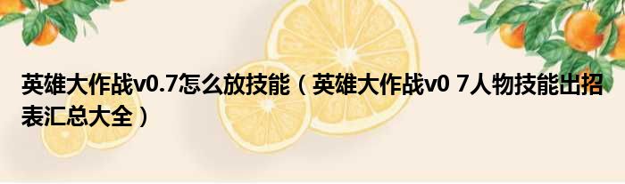 大家好,今天小六子来为大家解答以下的问题,关于英雄大作战v0.7怎么放技能,英雄大作战v0 7人物技能出招表汇总大全这个很多人还不知道,现在让我们一起来看看吧!
