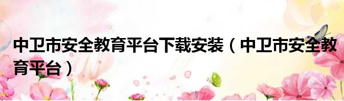 中卫市安全教育平台下载安装(中卫市安全教育平台)