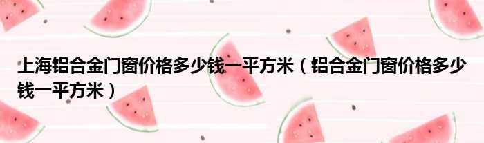 上海铝合金门窗价格多少钱一平方米(铝合金门窗价格多少钱一平方米)