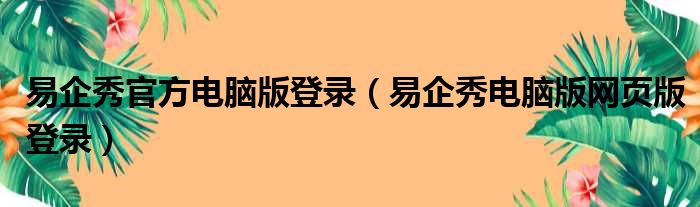 导读 大家好,今天小六子来为大家解答以下的问题,关于易企秀官方电脑版登录,易企秀电脑版网页版登录这个很多人还不知道,现在让我们一起来看看