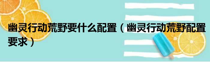 幽灵行动荒野要什么配置(幽灵行动荒野配置要求)