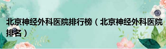 北京神经外科医院排行榜(北京神经外科医院排名)