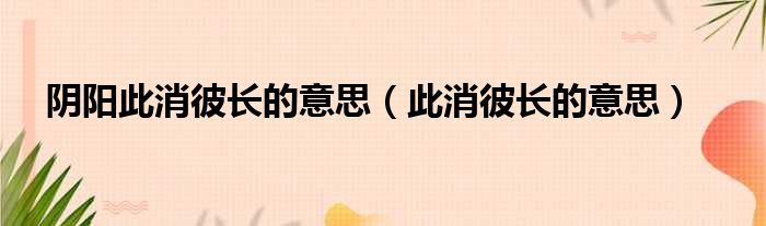 导读 大家好,今天小六子来为大家解答以下的问题,关于阴阳此消彼长的意思,此消彼长的意思这个很多人还不知道,现在让我们一起来看看吧!1、应该