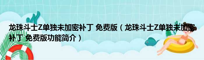 龙珠斗士Z单独未加密补丁 免费版(龙珠斗士Z单独未加密补丁 免费版功能简介)
