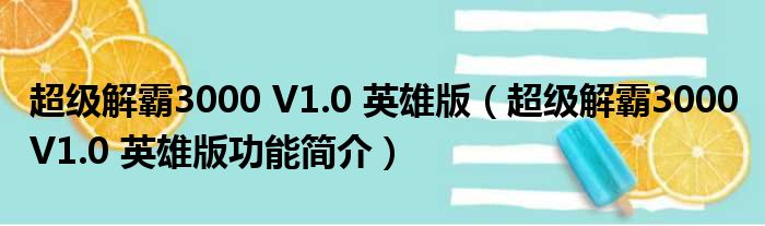 超级解霸3000 V1.0 英雄版(超级解霸3000 V1.0 英雄版功能简介)