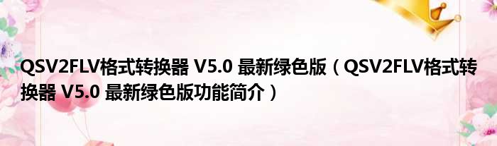 QSV2FLV格式转换器 V5.0 最新绿色版(QSV2FLV格式转换器 V5.0 最新绿色版功能简介)