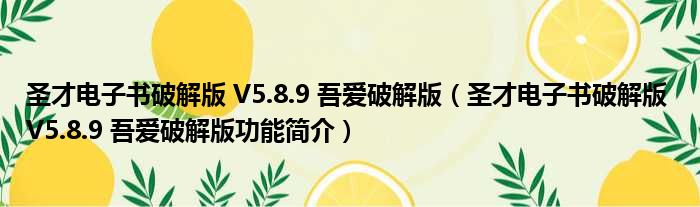 导读 大家好,关于圣才电子书破解版 V5 8 9 吾爱破解版,圣才电子书破解版 V5 8 9 吾爱破解版功能简介这个很多人还不知道,小勒来为大家解答以