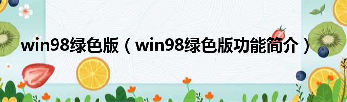 win98绿色版(win98绿色版功能简介)