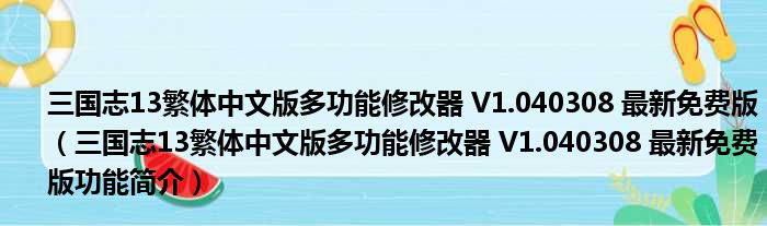 三国志13繁体中文版多功能修改器 V1.040308 最新免费版(三国志13繁体中文版多功能修改器 V1.040308 最新免费版功能简介)