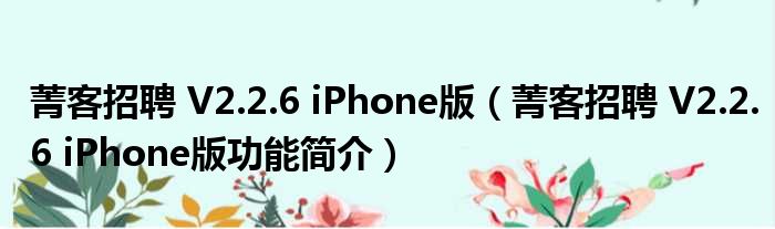 菁客招聘 V2.2.6 iPhone版(菁客招聘 V2.2.6 iPhone版功能简介)