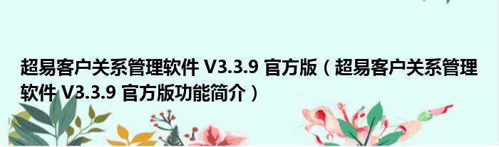 超易客户关系管理软件 V3.3.9 官方版(超易客户关系管理软件 V3.3.9 官方版功能简介)