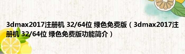 3dmax2017注册机 32/64位 绿色免费版(3dmax2017注册机 32/64位 绿色免费版功能简介)