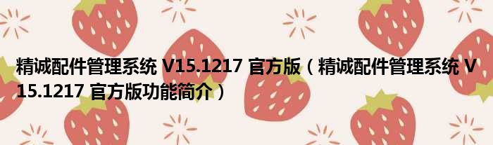 导读 大家好,关于精诚配件管理系统 V15 1217 官方版,精诚配件管理系统 V15 1217 官方版功能简介这个很多人还不知道,小勒来为大家解答以上的