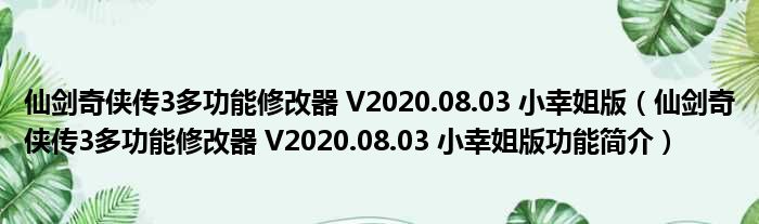 仙剑奇侠传3多功能修改器 V2020.08.03 小幸姐版(仙剑奇侠传3多功能修改器 V2020.08.03 小幸姐版功能简介)