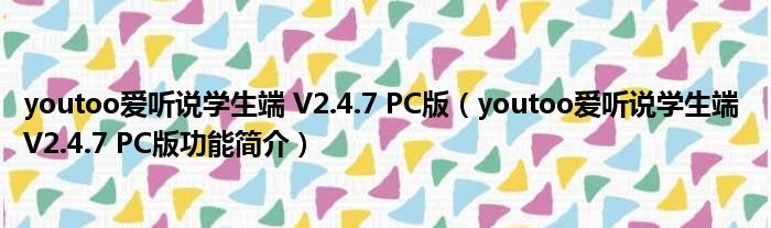 youtoo爱听说学生端 V2.4.7 PC版(youtoo爱听说学生端 V2.4.7 PC版功能简介)