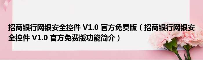 招商银行网银安全控件 V1.0 官方免费版(招商银行网银安全控件 V1.0 官方免费版功能简介)