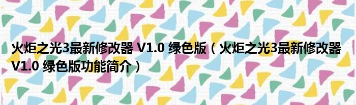 火炬之光3最新修改器 V1.0 绿色版(火炬之光3最新修改器 V1.0 绿色版功能简介)