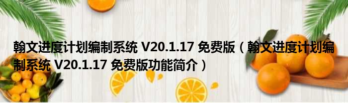 翰文进度计划编制系统 V20.1.17 免费版(翰文进度计划编制系统 V20.1.17 免费版功能简介)