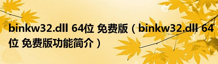 binkw32.dll 64位 免费版(binkw32.dll 64位 免费版功能简介)