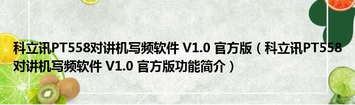 科立讯PT558对讲机写频软件 V1.0 官方版(科立讯PT558对讲机写频软件 V1.0 官方版功能简介)