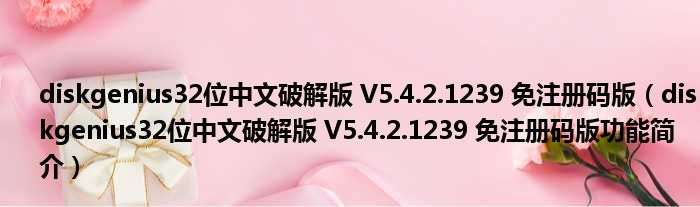 diskgenius32位中文破解版 V5.4.2.1239 免注册码版(diskgenius32位中文破解版 V5.4.2.1239 免注册码版功能简介)