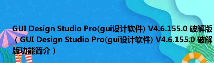 导读 大家好,关于GUI Design Studio Pro(gui设计软件) V4 6 155 0 破解版,GUI Design Studio Pro(gui设计软件) V4 6 155 0 破解版功