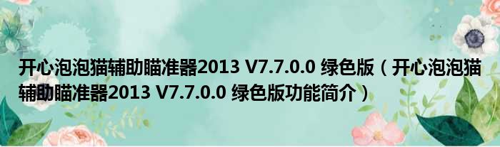 开心泡泡猫辅助瞄准器2013 V7.7.0.0 绿色版(开心泡泡猫辅助瞄准器2013 V7.7.0.0 绿色版功能简介)