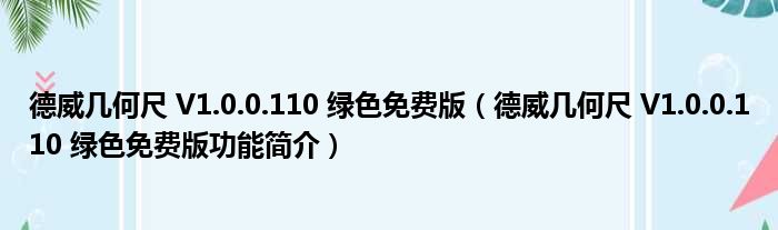德威几何尺 V1.0.0.110 绿色免费版(德威几何尺 V1.0.0.110 绿色免费版功能简介)