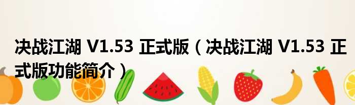 决战江湖 V1.53 正式版(决战江湖 V1.53 正式版功能简介)
