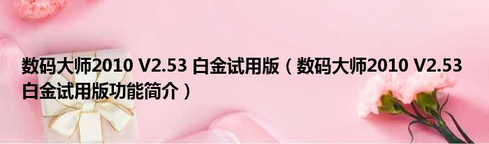 数码大师2010 V2.53 白金试用版(数码大师2010 V2.53 白金试用版功能简介)