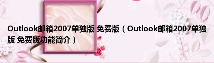 Outlook邮箱2007单独版 免费版(Outlook邮箱2007单独版 免费版功能简介)