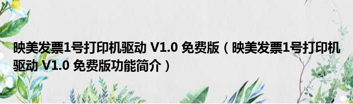 映美发票1号打印机驱动 V1.0 免费版(映美发票1号打印机驱动 V1.0 免费版功能简介)