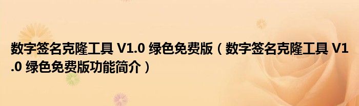 导读 大家好,关于数字签名克隆工具 V1 0 绿色免费版,数字签名克隆工具 V1 0 绿色免费版功能简介这个很多人还不知道,小勒来为大家解答以上的