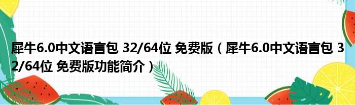 犀牛6.0中文语言包 32/64位 免费版(犀牛6.0中文语言包 32/64位 免费版功能简介)