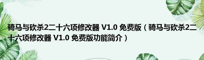 骑马与砍杀2二十六项修改器 V1.0 免费版(骑马与砍杀2二十六项修改器 V1.0 免费版功能简介)