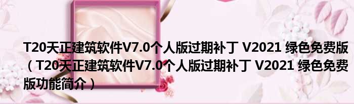 T20天正建筑软件V7.0个人版过期补丁 V2021 绿色免费版(T20天正建筑软件V7.0个人版过期补丁 V2021 绿色免费版功能简介)