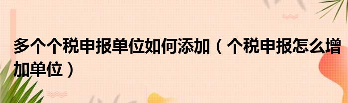 多个个税申报单位如何添加(个税申报怎么增加单位)