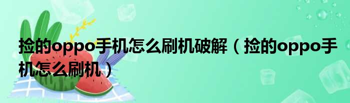 捡的oppo手机怎么刷机破解(捡的oppo手机怎么刷机)