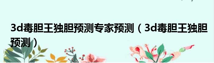 3d毒胆王独胆预测专家预测(3d毒胆王独胆预测)