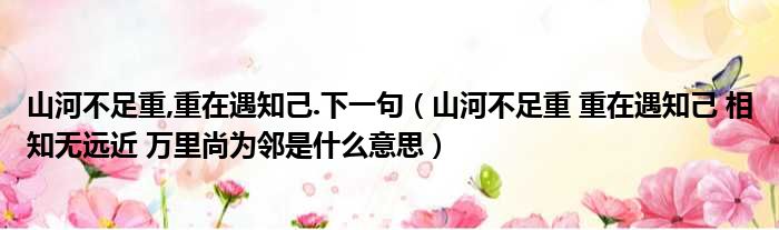 山河不足重,重在遇知己.下一句(山河不足重 重在遇知己 相知无远近 万里尚为邻是什么意思)