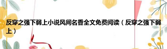 导读 大家好,今天小六子来为大家解答以下的问题,关于反穿之强下弱上小说风间名香全文免费阅读,反穿之强下弱上这个很多人还不知道,现在让我们